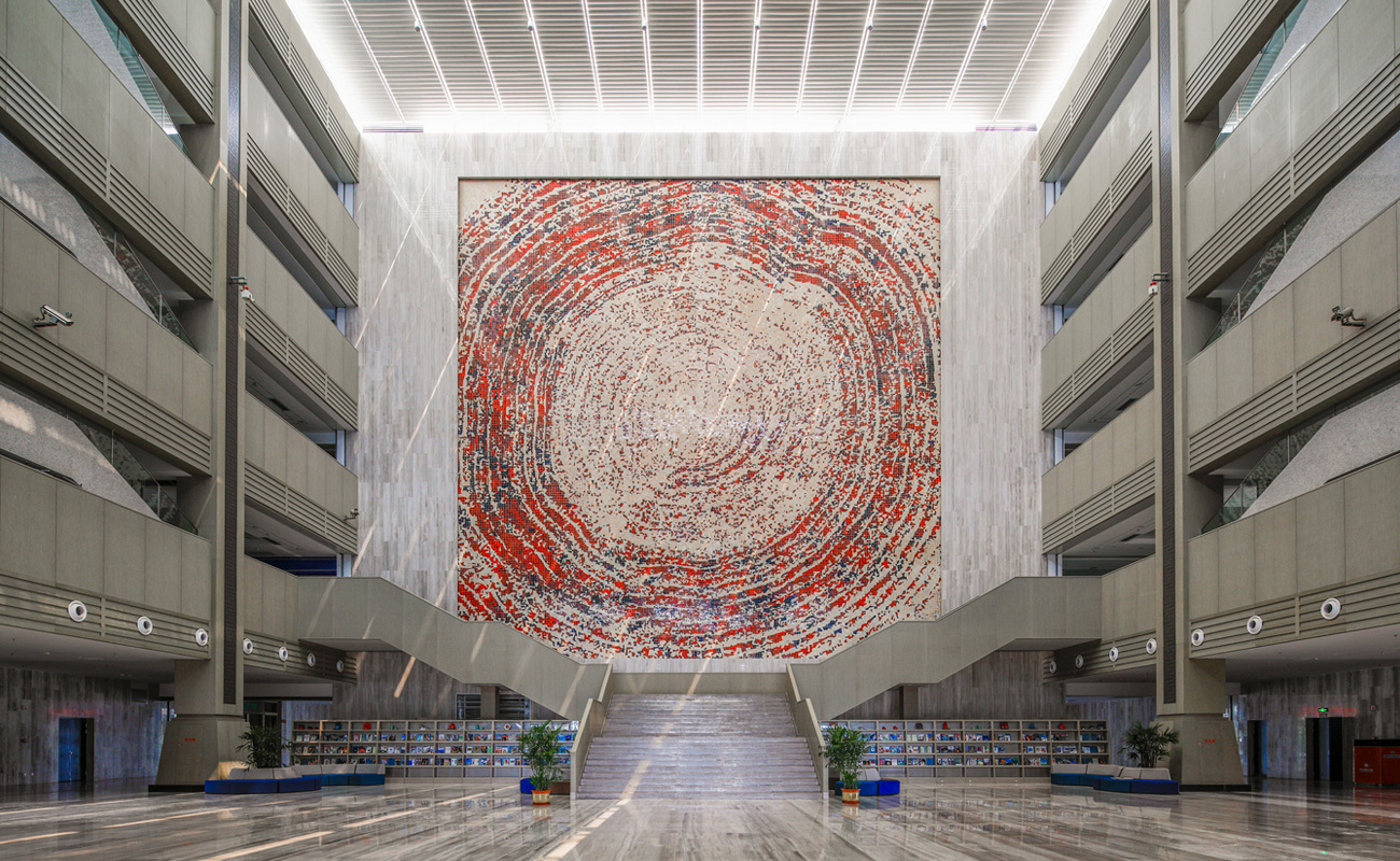 三彩环艺【文明之源】洛阳师范学院图书馆主题壁画,这是一本读不完的书!